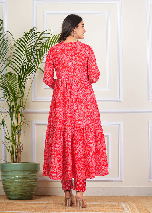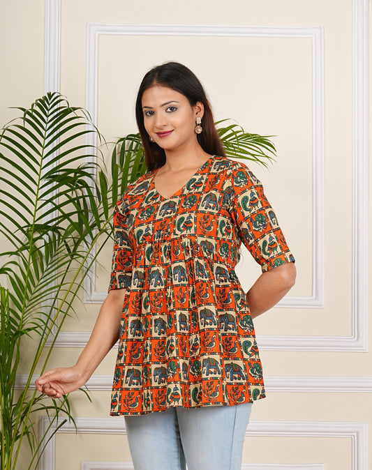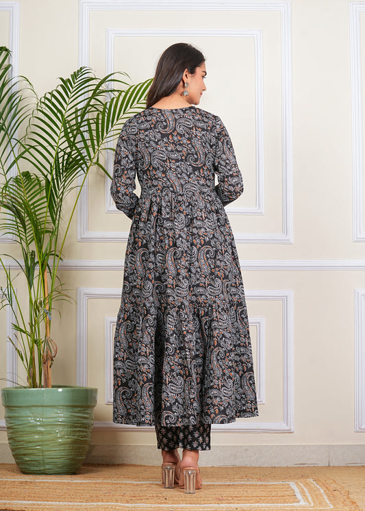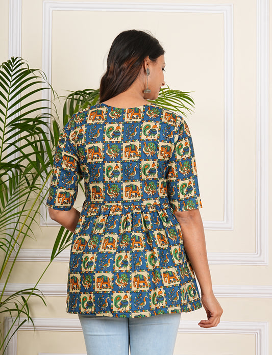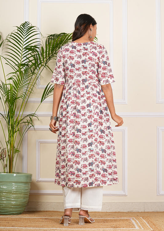 Cotton Elephant Print More Flair Aliya Dress With Pant